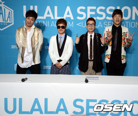 9일 오후 서울 청담동 CGV 엠큐브에서 진행된 울랄라세션 첫번째 미니앨범 'ULALA SENSATION'발표 기념 기자간담회에서 울랄라세션이 포토타임을 가지고 있다.
