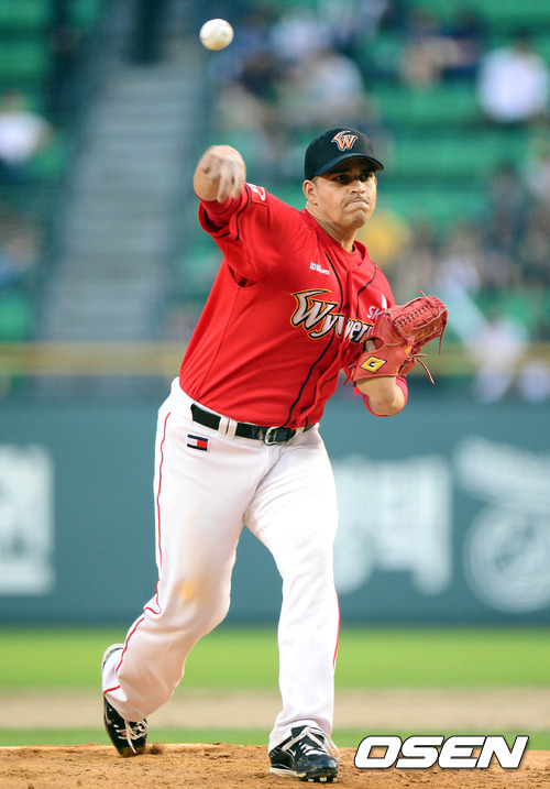 9일 오후 서울 잠실구장에서 열린 '2012 팔도 프로야구' 두산 베어스와 SK 와이번스의 경기 1회말 마리오가 역투하고 있다.