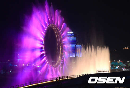 9일 오후 전남 여수시 여수 신항일대에서 진행되는 '2012 여수 세계박람회' 미디어데이 행사, 거대한 O형 구조물인 빅오(BIG-O)의 해상 분수쇼가 펼쳐지고 있다.