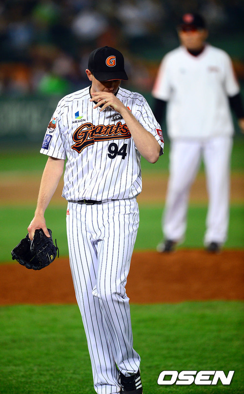 9일 오후 부산 사직구장에서 열린 2012 팔도 프로야구 롯데 자이언츠와 삼성 라이온즈의 경기 7회초 롯데 사도스키가 교체되고 있다. 사도스키는 6⅔이닝 3실점 했다