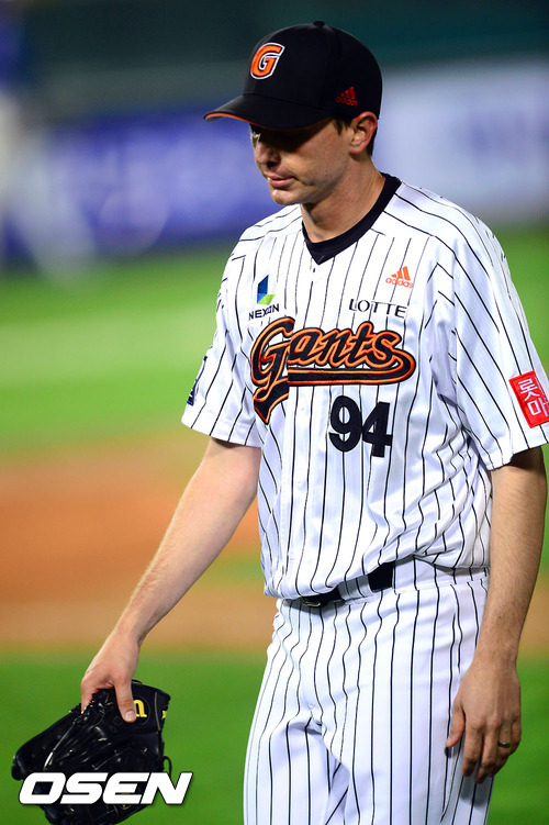 9일 오후 부산 사직구장에서 열린 2012 팔도 프로야구 롯데 자이언츠와 삼성 라이온즈의 경기 7회초 롯데 사도스키가 교체되고 있다. 사도스키는 6⅔이닝 3실점 했다