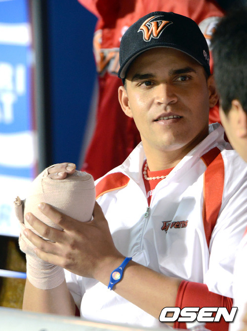 9일 오후 서울 잠실구장에서 열린 '2012 팔도 프로야구' 두산 베어스와 SK 와이번스의 경기 SK 마리오가 덕 아웃에서 선수들과 이야기를 나누고 있다.