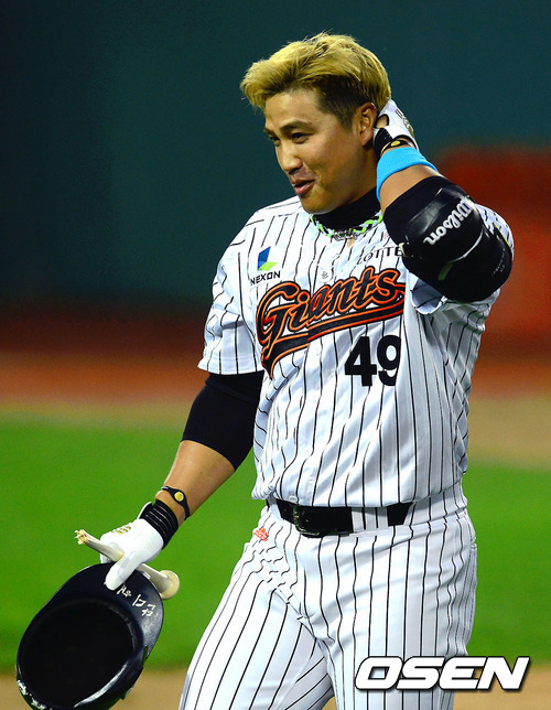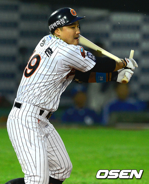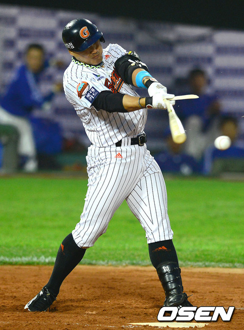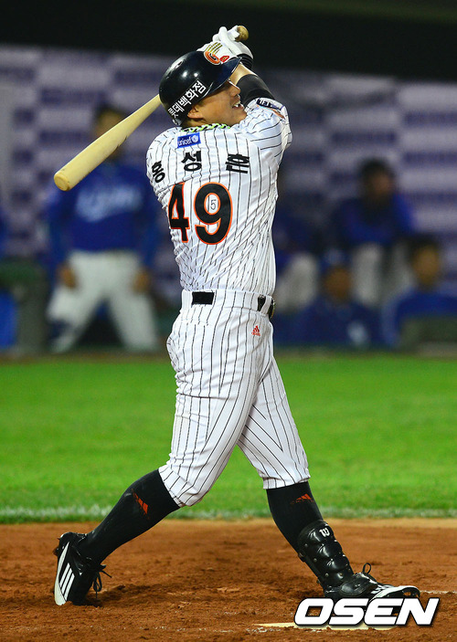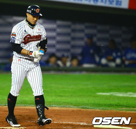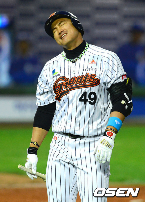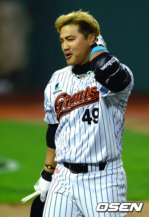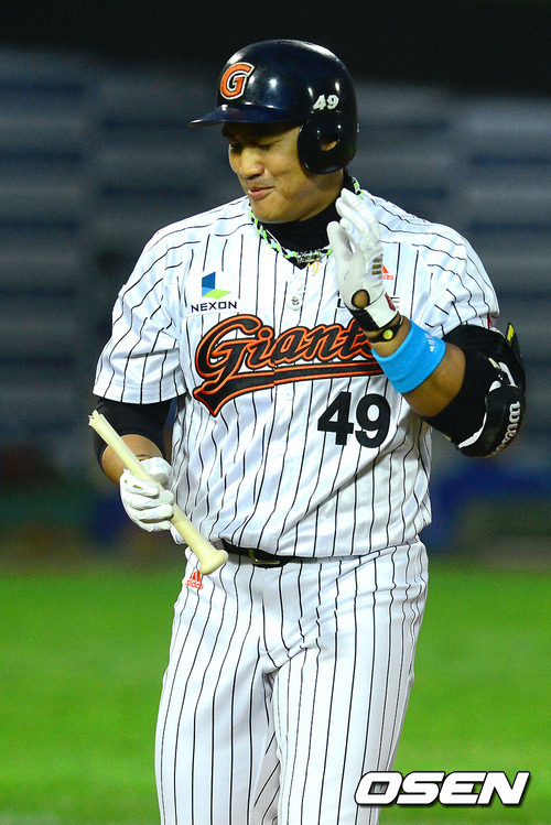 홍성흔의 방망이가 그대로 안면 강타