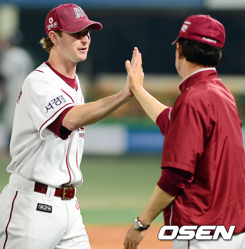 경기를 마치고 넥센 밴헤켄과 김시진 감독이 하이파이브를 하고 있다. / rumi@osen.co.kr