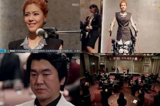 하반신 마비의 이윤지가 한반도 평화 협정을 위해 세계 각국 상임고문 앞에서 당당히 기립했다.