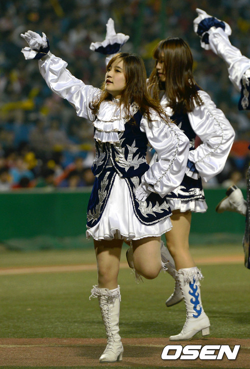10일 오후 대전 한밭야구장에서 열린 '2012 팔도 프로야구' 한화 이글스와 KIA 타이거즈의 경기, 클리닝타임때 카이스트 치어리더들이 그라운드에서 공연을 하고 있다.