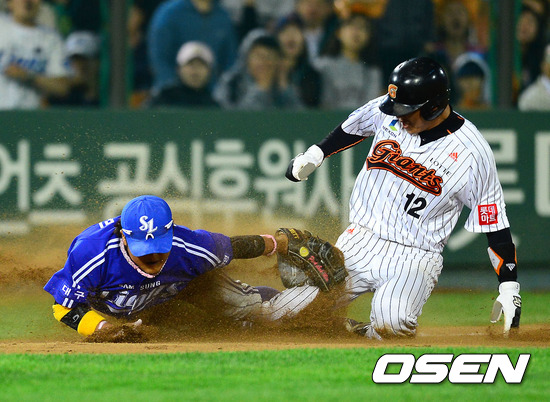 여기서 강민호는 우전 2루타로 경기를 원점으로 돌려놨고 1사 2,3루 기회를 이어갔다. 삼성 배터리는 이날 타격감이 좋았던 황재균을 거르고 8번 신본기-9번 문규현과 상대하기로 했다. 결국 신본기와 문규현은 차례로 권오준에 삼진아웃 당하며 경기를 뒤집지는 못했다.