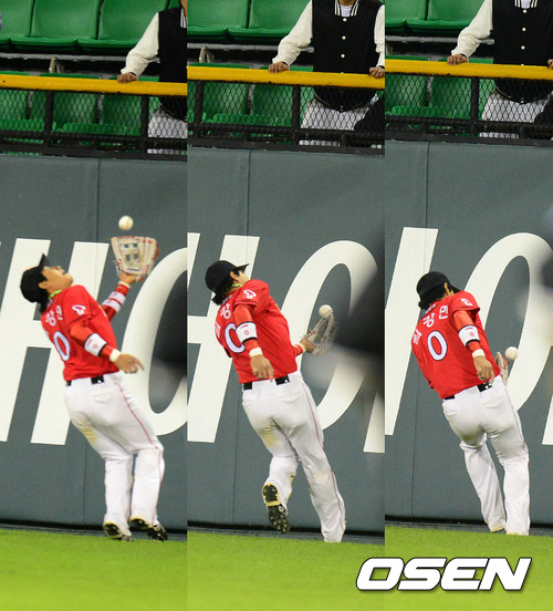 SK 김강민이 두산 임재철의 타구를 놓치며 역전 끝내기를 허용하고 있다./jpnews@osen.co.kr
