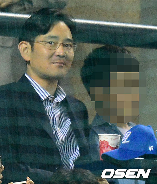 11일 오후 서울 잠실구장에서 열린 '2012 팔도 프로야구' LG 트윈스와 삼성 라이온즈의 경기, 삼성전자 이재용 사장이 아들과 경기장을 찾아 관전하고 있다.