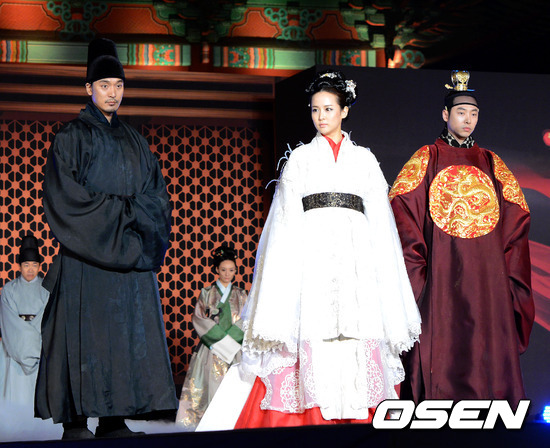 11일 오후 서울 경희궁 숭정전에서 영화 '후궁:제왕의 첩'의 쇼케이스가 열려 김민준, 조여정, 김동욱이 영화에 등장하는 한복의상을 입고 패션쇼를 하고 있다.