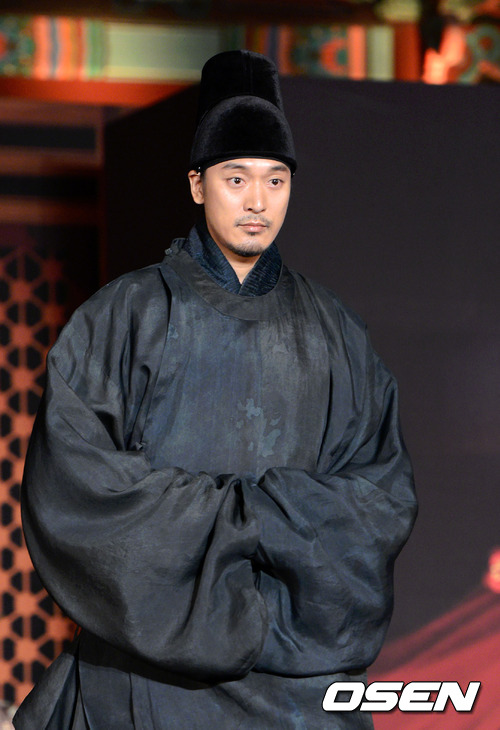 11일 오후 서울 경희궁 숭정전에서 영화 '후궁:제왕의 첩'의 쇼케이스가 열려 김민준이 영화에 등장하는 한복의상을 입고 패션쇼를 하고 있다.
