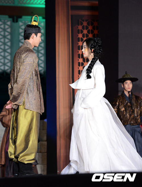 11일 오후 서울 경희궁 숭정전에서 영화 '후궁:제왕의 첩'의 쇼케이스가 열려 모델들이 영화에 등장하는 한복의상을 입고 패션쇼를 하고 있다.