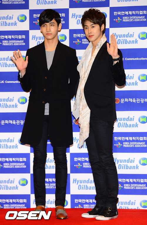 12일 오후 서울 상암동 서울월드컵경기장에서 열리는 '사랑한다 대한민국 2012 드림콘서트'에 앞서 그룹 동방신기가 포토월에서 포즈를 취하고 있다.
