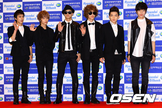 12일 오후 서울 상암동 서울월드컵경기장에서 열리는 '사랑한다 대한민국 2012 드림콘서트'에 앞서 그룹 틴탑이 포토월에서 포즈를 취하고 있다.