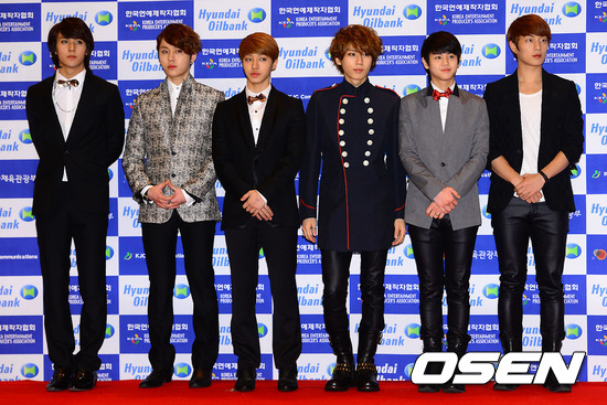 12일 오후 서울 상암동 서울월드컵경기장에서 열리는 '사랑한다 대한민국 2012 드림콘서트'에 앞서 그룹 비스트가 포토월에서 포즈를 취하고 있다.