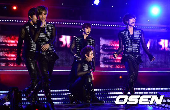 12일 오후 서울 상암동 서울월드컵경기장에서 열리는 '사랑한다 대한민국 2012 드림콘서트'에 가수 엠블랙이 멋진 무대를 펼치고 있다