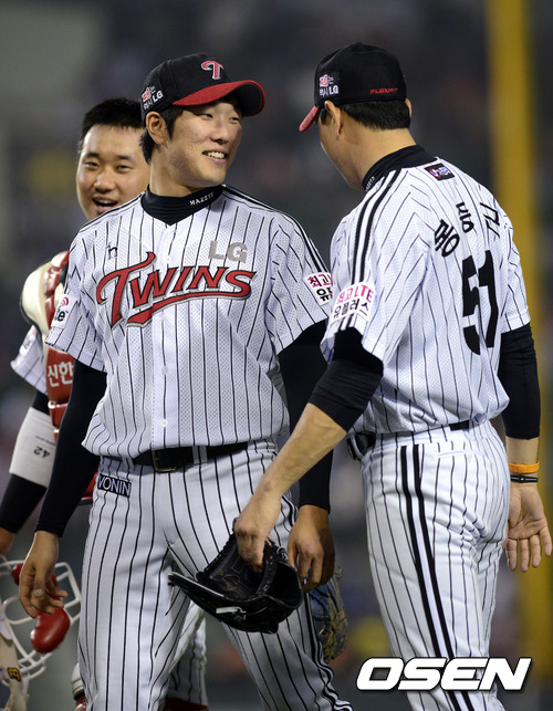 경기 종료 후 LG 유원상이 봉중근과 이야기를 하고 있다. / youngrae@osen.co.kr
