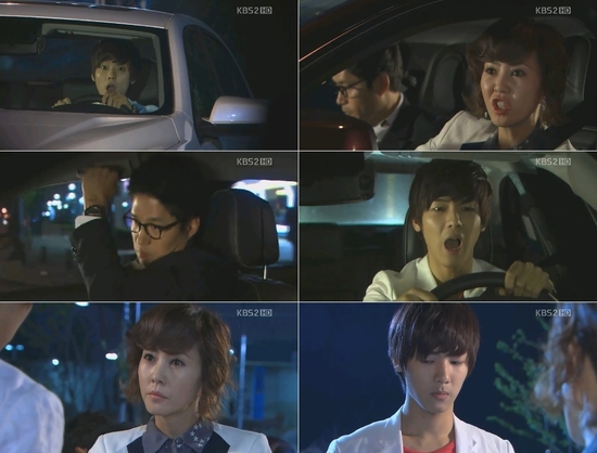 12일 오후 방송된 KBS 2TV 주말연속극 '넝쿨째 굴러온 당신'에서 윤희(김남주 분)는 자신의 동네를 기웃거리는 세광(강민혁 분)의 모습을 발견했다. 도망가려는 세광을 포착한 윤희는 남편 귀남(유준상 분)에게 "자기야, 꽉 잡아"라며 가속 페달을 밟았다.