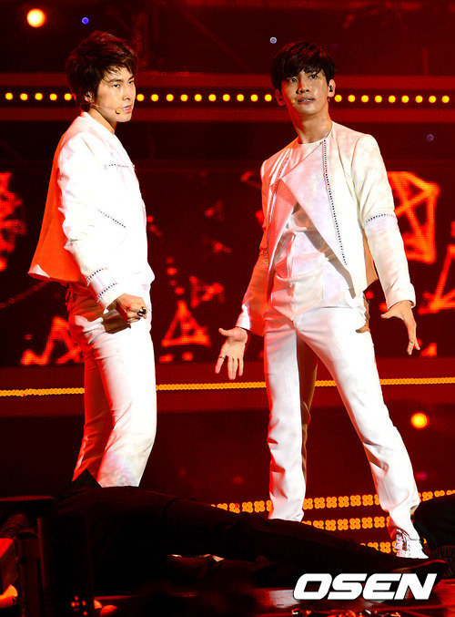 12일 오후 서울 상암동 서울월드컵경기장에서 열리는 '사랑한다 대한민국 2012 드림콘서트'에 가수 동방신기가 멋진 무대를 펼치고 있다.