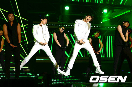 12일 오후 서울 상암동 서울월드컵경기장에서 열리는 '사랑한다 대한민국 2012 드림콘서트'에 가수 동방신기가 멋진 무대를 펼치고 있다.