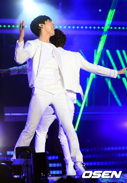 12일 오후 서울 상암동 서울월드컵경기장에서 열리는 '사랑한다 대한민국 2012 드림콘서트'에 가수 동방신기가 멋진 무대를 펼치고 있다.