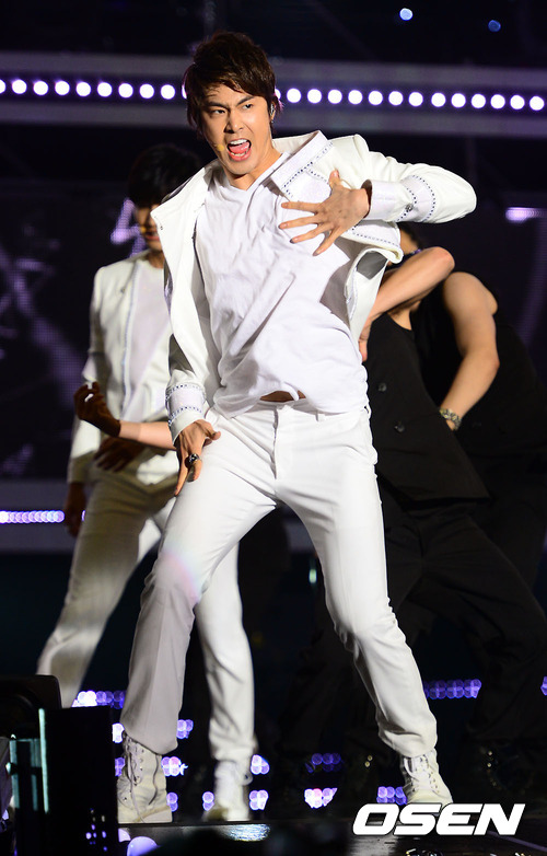 12일 오후 서울 상암동 서울월드컵경기장에서 열리는 '사랑한다 대한민국 2012 드림콘서트'에 가수 동방신기가 멋진 무대를 펼치고 있다.