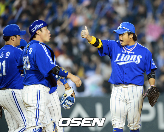 경기 종료후 박석민이 엄지손가락을 치켜세우며 승리의 세리머니를 펼치고 있다. / ajyoung@osen.co.kr