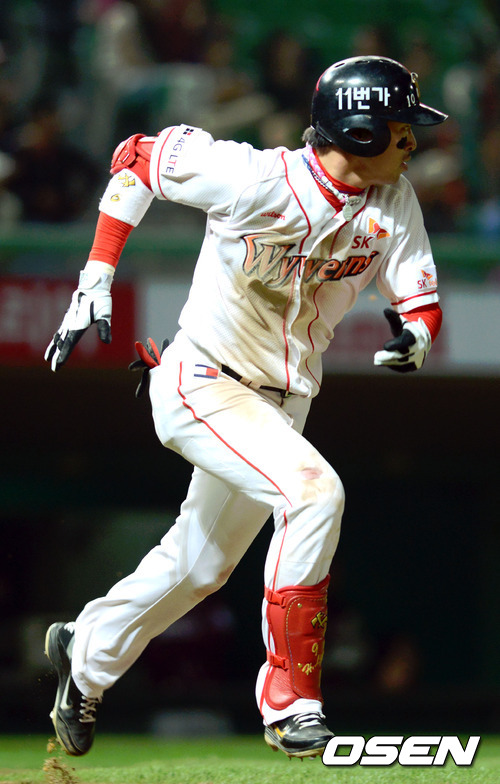 13일 오후 인천 문학야구장에서 열린 '2012 팔도 프로야구' SK 와이번스와 넥센 히어로즈의 경기 11회말 1사 1,2루 SK 임훈이 안타를 치고 1루 베이스를 향해 전력 질주 하고 있다.
