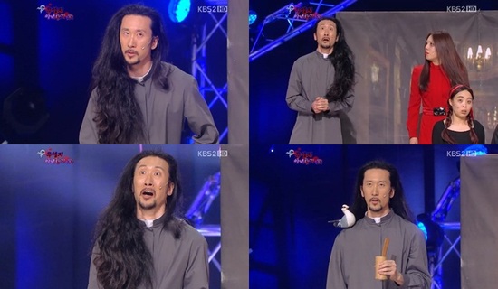 긴 머리를 한 채 무대에 등장한 서남용은 "혹시 이 집에 긴 머리 소녀가 살았나요"라고 허안나에 질문, "그런적 없는데요"라는 답변에 자신의 머리를 보고 놀라는 코믹한 설정을 선보여 폭소를 유발했다.