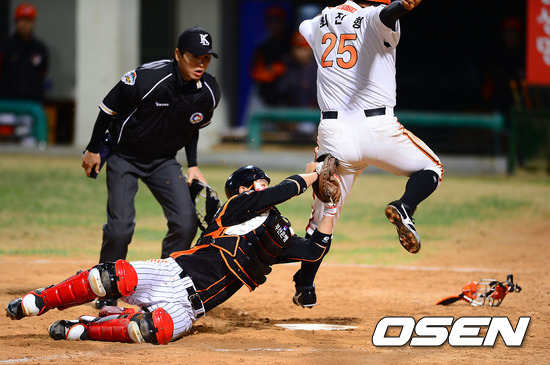 이날 한화는 롯데에 5회초까지 0-7로 리드당해 패하는듯 싶었습니다. 5회 말 고동진의 만루홈런으로 5-7로 추격하고 7회 말에 무려 8점이나 뽑았습니다. 집중안타로 7-7 동점으로 만든 한화가 2사 1, 2루 기회에서 오선진의 우전 안타 때 2루에서 뛰어든 최진행이 포수의 태그를 피하려고 두 발로 점프를 한 뒤 홈을 밟았습니다.