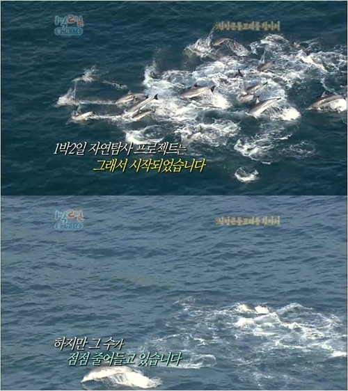 지난 13일 방송된 KBS 2TV 예능 프로그램 ‘해피선데이-1박2일’은 자연탐사 프로젝트 1탄 ‘돌고래 114’를 내보냈다. ‘돌고래 114’는 제주도 앞바다에 사는 남방큰돌고래 114마리를 뜻하는 것. 멸종위기에 처한 남방큰돌고래에 대한 경각심을 이끌어내기 위해 제작진이 준비한 프로젝트다.