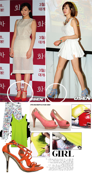 오연서는 화사한 오렌지 계열의 추상적인 패턴으로 된 원피스를 입어 상큼한 매력을 내뿜었다. 전체적으로 슬림하게 떨어지는 라인에 허리부분만 살짝 강조해줘 몸매가 볼륨감 있어 보인다. 화려한 의상과 대비되게 슈즈는 깔끔한 화이트 컬러로 매치해 스타일의 강약을 조절하는 센스를 발휘했다.