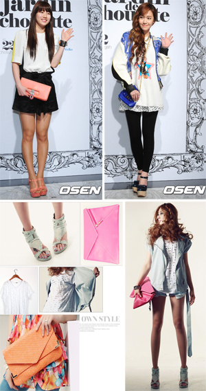 소녀시대 제시카는 캐주얼한 복장과 어울리게 블루컬러 백을 매치했다. 상의가 블루 계열이라 백이 너무 튀지 않으면서 자연스럽게 스타일에 흡수되어 세련된 연출이 됐다.