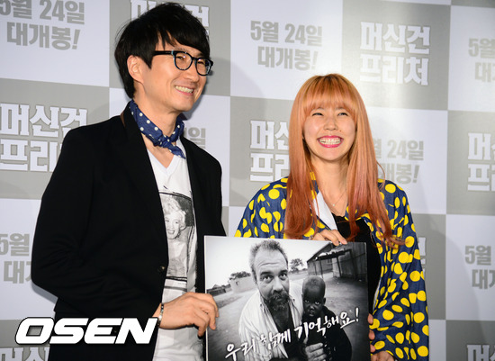14일 오후 서울 삼성동 코엑스 메가박스에서 열린 영화 '머신건 프리처'스타 VIP 시사회에서 주영훈 이윤미 부부가 포토타임을 갖고 있다.