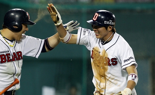 5회말 두산 공격. 두산은 양의지의 볼넷과 불규칙 바운드에 편승한 허경민의 안타로 1사 1,3루 찬스를 잡았다. 타석의 정수빈이 밀어 친 타구는 3루수 이여상의 글러브를 외면하고 좌익선상을 타고 흐르는 1타점 2루타로 이어졌다. 이종욱의 유격수 뜬공으로 2사 2,3루가 되었으나 후속 타자 손시헌이 2루수 한상훈의 키를 넘기는 2타점 우중간 안타를 때려내며 4-6 추격점을 뽑았다.