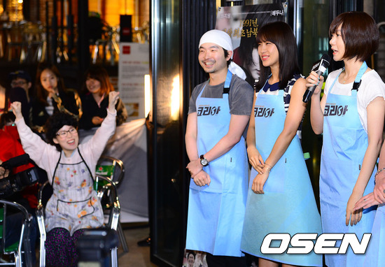 15일 오후 서울 압구정 한 포차에서 진행된 영화 '코리아' 일일포차에서 배우 배두나가 팬들에게 인사를 하고 있다