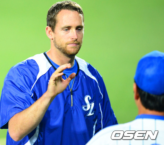 경기를 마치고 삼성 탈보트가 코치들과 하이파이브를 하고 있다. / rumi@osen.co.kr