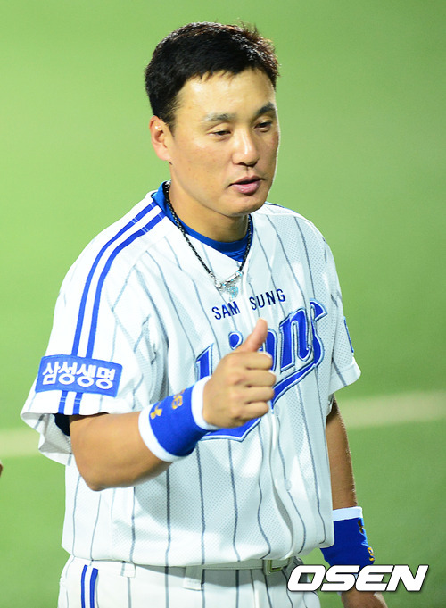 경기를 마치고 삼성 이승엽이 코치들과 하이파이브를 하고 있다. / rumi@osen.co.kr