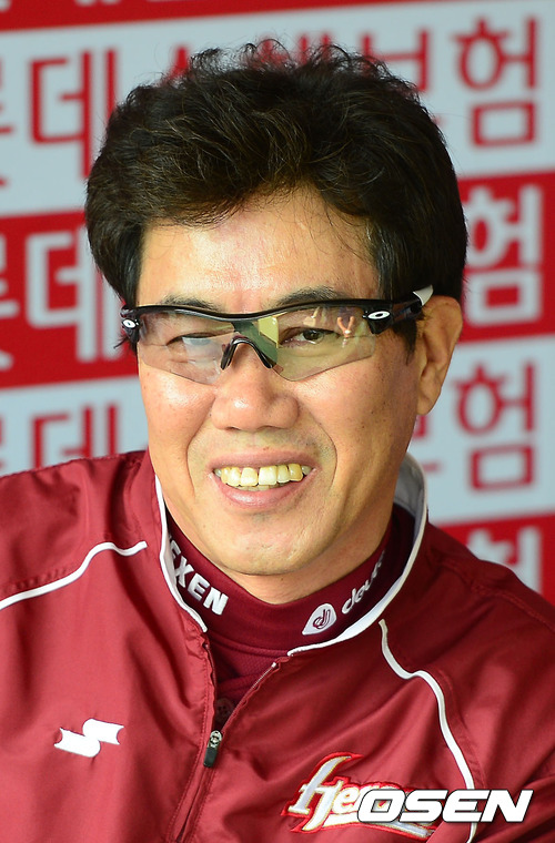 16일 오후 사직구장에서 '2012 팔도 프로야구' 롯데 자이언츠와 넥센 히어로즈와의 경기가 열릴 예정인 가운데 넥센 김시진 감독이 덕아웃에서 미소짓고 있다.