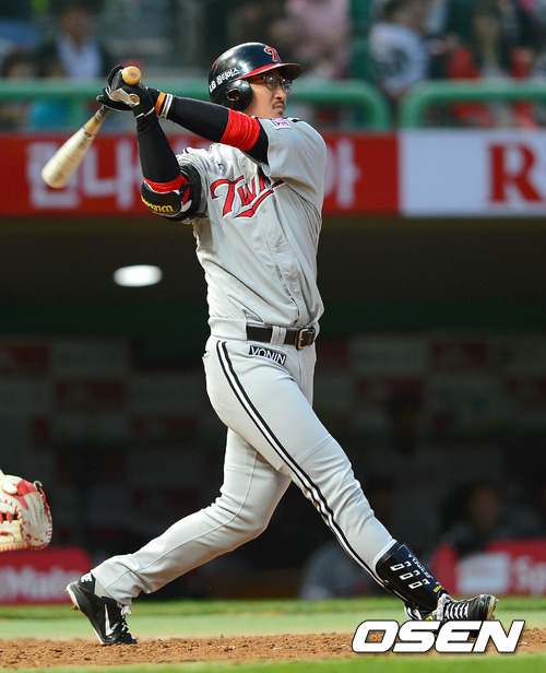 16일 오후 인천야구장에서 열린 '2012 팔도 프로야구' SK 와이번스와 LG 트윈스와의 경기, 3회초 2사 LG 박용택이 우월 솔로 홈런을 치고 있다.