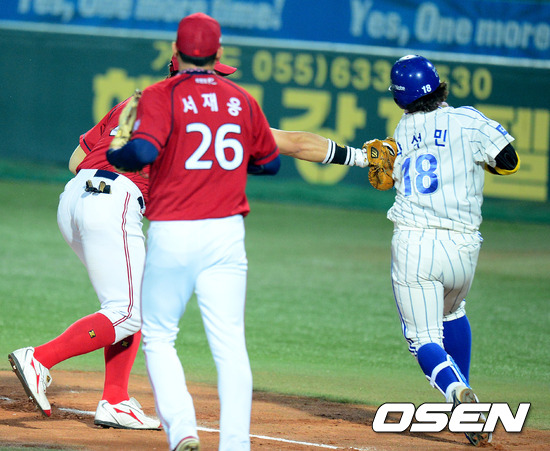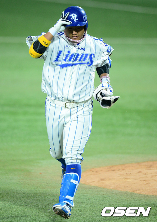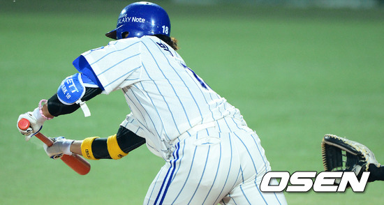 16일 오후 대구구장에서 열린 '2012 팔도 프로야구' 삼성 라이온즈와 KIA 타이거즈의 경기, 3회말 무사 1,2루에서 삼성 4번타자 박석민이 희생번트를 성공시키고 있다.