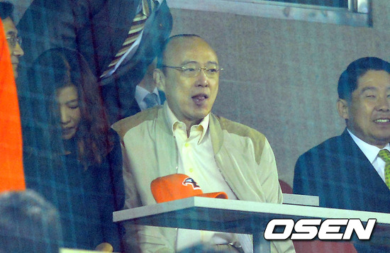 16일 오후 서울 잠실구장에서 열리는 2012 팔도 프로야구 두산 베어스와 한화 이글스의 경기 한화 김승연 회장이 경기장을 찾아 관전하고 있다
