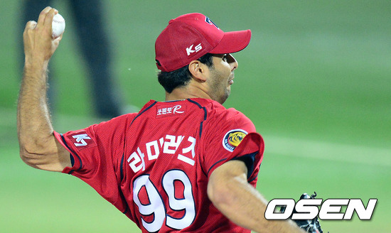 16일 오후 대구구장에서 열린 '2012 팔도 프로야구' 삼성 라이온즈와 KIA 타이거즈의 경기, 3회말 1사 만루에서 마운드에 오른 KIA 라미레즈가 역투하고 있다.