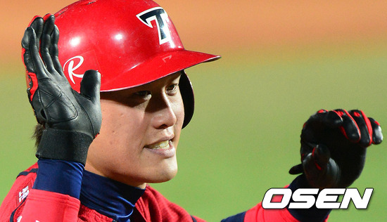 16일 오후 대구구장에서 열린 '2012 팔도 프로야구' 삼성 라이온즈와 KIA 타이거즈의 경기, 6회초 무사 1,2루에서 역전 적시타를 날린 KIA 이준호가 기뻐하고 있다.
