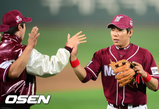 16일 오후 사직구장에서 열린 '2012 팔도 프로야구' 롯데 자이언츠와 넥센 히어로즈와의 경기에서 넥센은 선발 김영민의 7이닝 무실점 호투와 6회 강정호의 쐐기 투런포로 롯데에 8-0 영봉승을 거두고 위닝시리즈를 확정지었다.