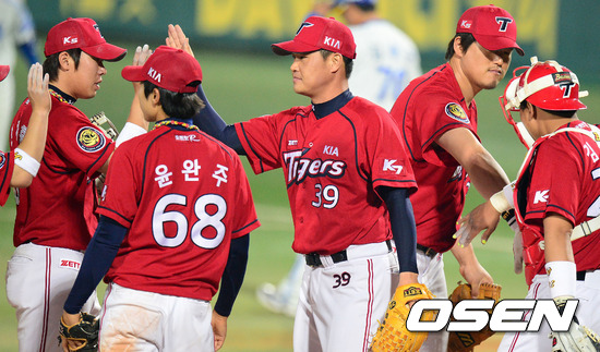승리를 거둔 KIA 선수들이 하이파이브를 하고 있다./jpnews@osen.co.kr