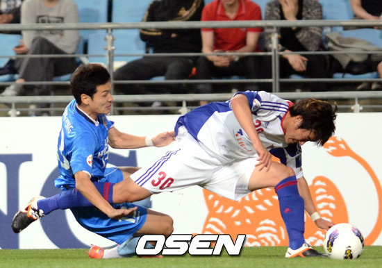 경기 전반 울산 김승용이 FC 도쿄 장현수의 돌파를 파울로 저지하고 있다. / youngrae@osen.co.kr
