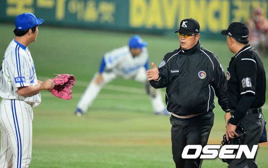 9회초 문승훈 심판이 삼성 안지만에 투구 자세를 지적하고 있다./jpnews@osen.co.kr