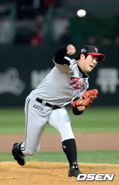 17일 오후 인천 문학야구장에서 열린 '2012 팔도 프로야구' SK 와이번스와 LG 트윈스의 경기 7회말 2사 LG 유원상이 마운드에서 역투하고 있다.