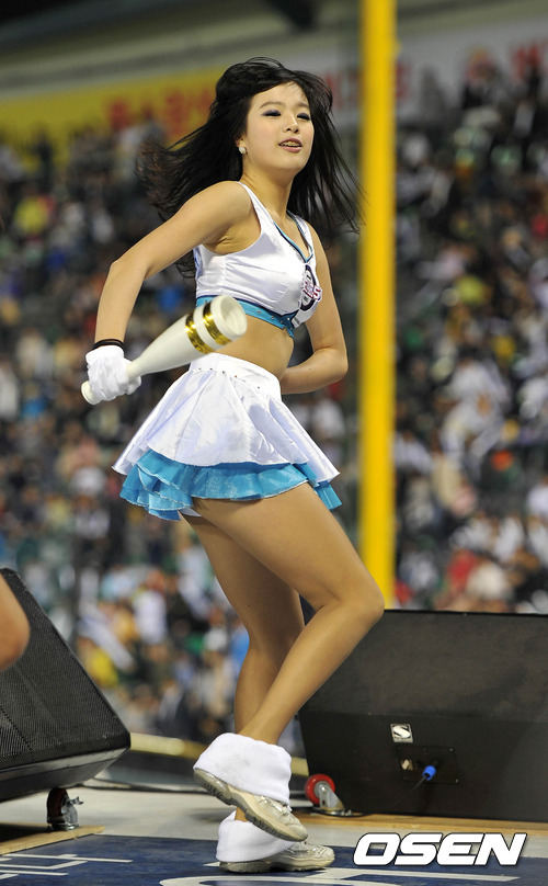 17일 오후 서울 잠실야구장에서 열린 '2012 팔도 프로야구' 두산 베어스와 한화 이글스의 경기, 두산 치어리더가 화려한 공연을 펼치고 있다.